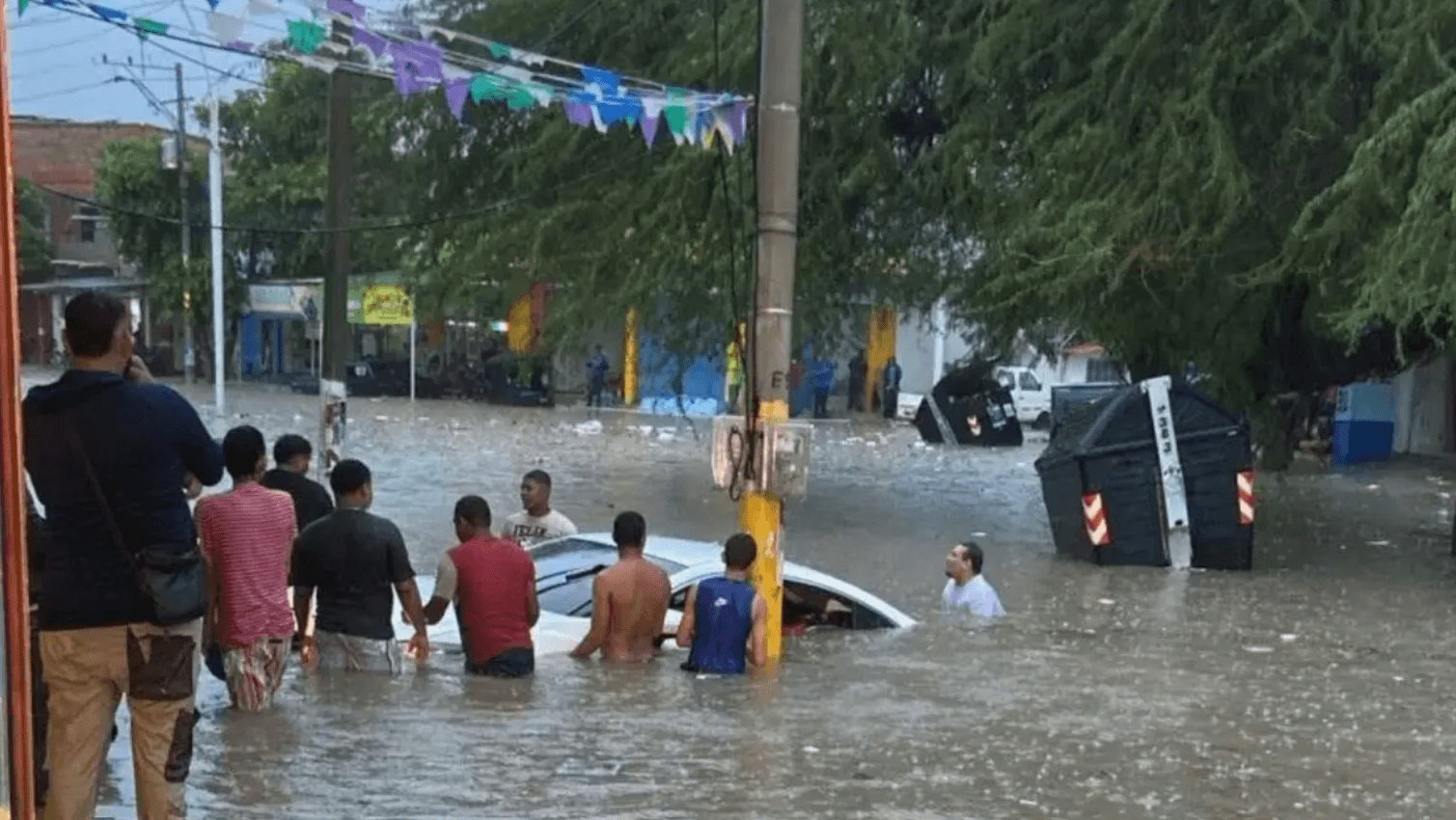 Desde las 3:30 de la tarde, el cielo se cerró sobre la capital del Magdalena. Lo que empezó como una llovizna se transformó en un diluvio que convirtió las calles del Centro Histórico en verdaderos ríos. En sectores como la Avenida del Ferrocarril y la calle 22, el agua cubría por completo los andenes, y la gente intentaba cruzar entre corrientes que arrastraban basura y motocicletas.