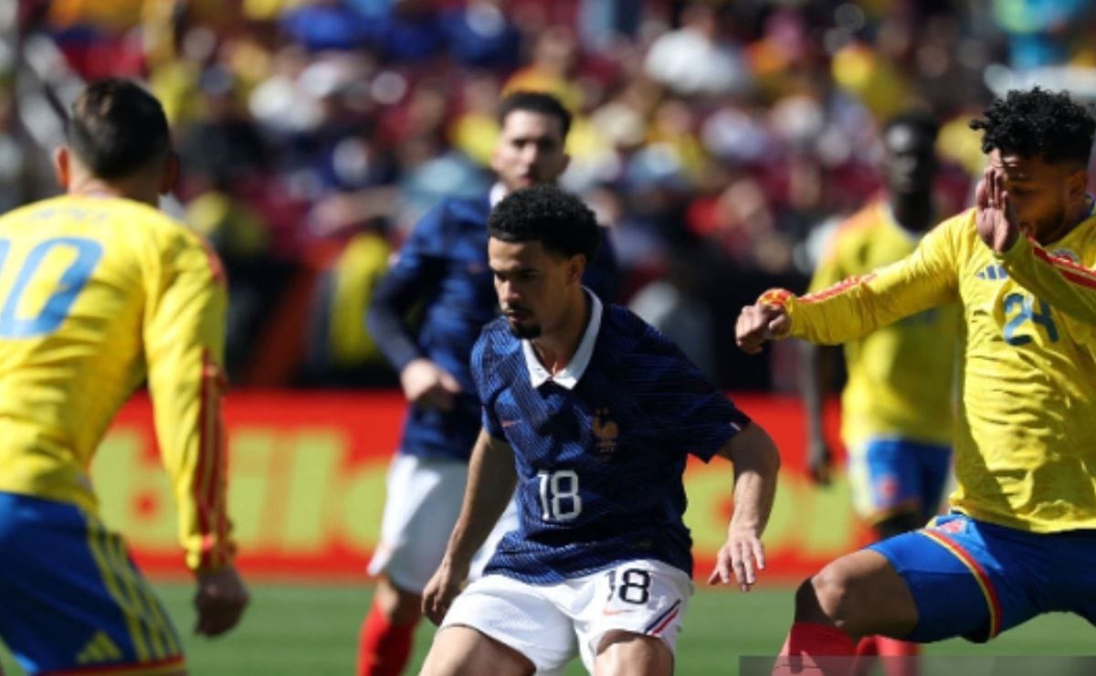 Francia con paciencia fue abriendo el juego a su favor. Cherki, Zaïre-Emery, Kanté y Akliouche y Doué progresaban con pases de primera por el medio para luego abrir el campo y así buscar penetrar la defensa colombiana. Antes de los dos goles del primer tiempo, hubo cuatro jugadas de riesgo, dos para cada bando.