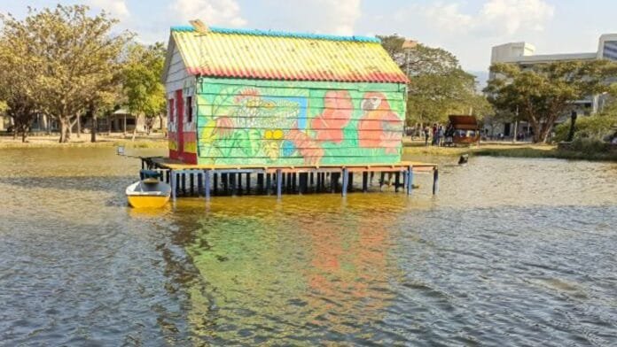 Ubicada en el lago del campus universitario, fue creada por maestros artesanos de las comunidades de la Ciénaga Grande de Santa Marta, como sitio de investigación y formación integral para los estudiantes.